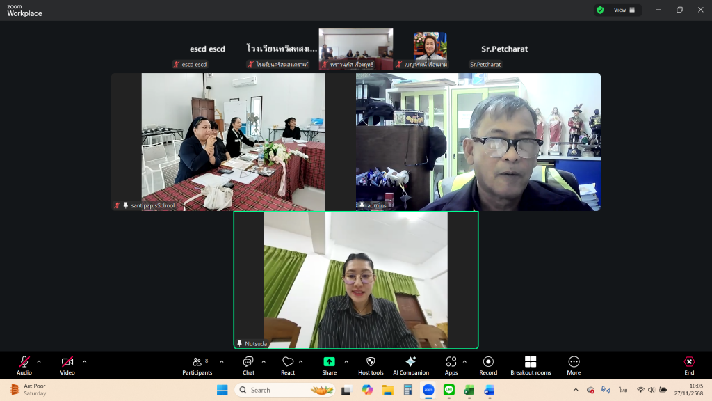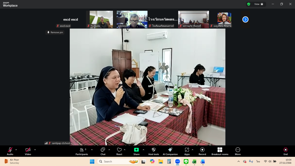 วันที่ 27 พฤศจิกายน 2568 คณะกรรมการผู้ตรวจประเมินงานประกันคุณภาพ รสจ. ได้เข้าตรวจเยี่ยมโรงเรียนสันติภาพผ่านระบบออนไลน์ เพื่อการประกันคุณภาพโรงเรียนในกลุ่ม รสจ.