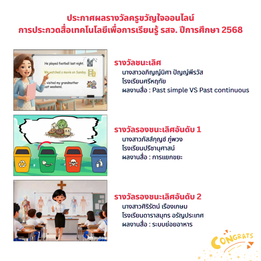 กิจกรรม รสจ. ผลรางวัลครูขวัญใจออนไลน์ การประกวดสื่อเทคโนโลยี รสจ. 5 กุมภาพันธ์ 20265 กุมภาพันธ์ 2026 academic_escd